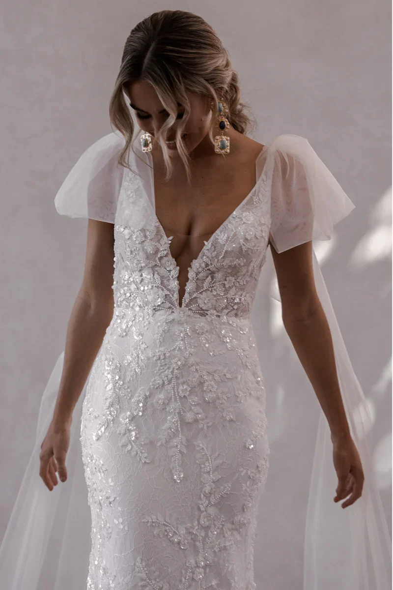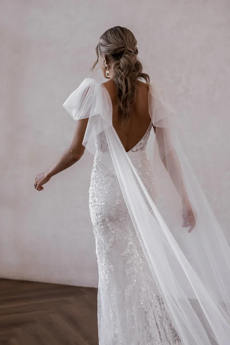 Pre-loved or sample sale gowns and accessories are perfect for brides on a tight timeline and budget. These items have been discounted by 30%-50%.